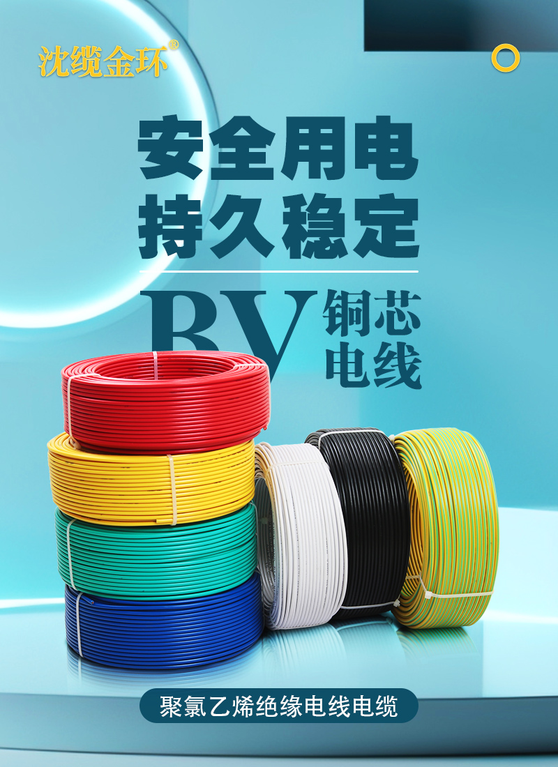 沈缆金环 1芯(单根)ZR-BV 1.0mm²-6mm² 铜芯聚氯乙烯绝缘阻燃电线 白色、黑色、红色、黄色、蓝色、绿色、双色