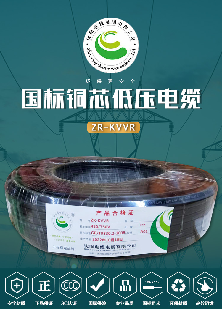 沈阳电线电缆有限公司 8芯 ZR-YJV 8*0.5mm²--8*2.5mm² 铜芯聚氯乙烯绝缘聚乙烯护套控制软电缆 铜芯电缆