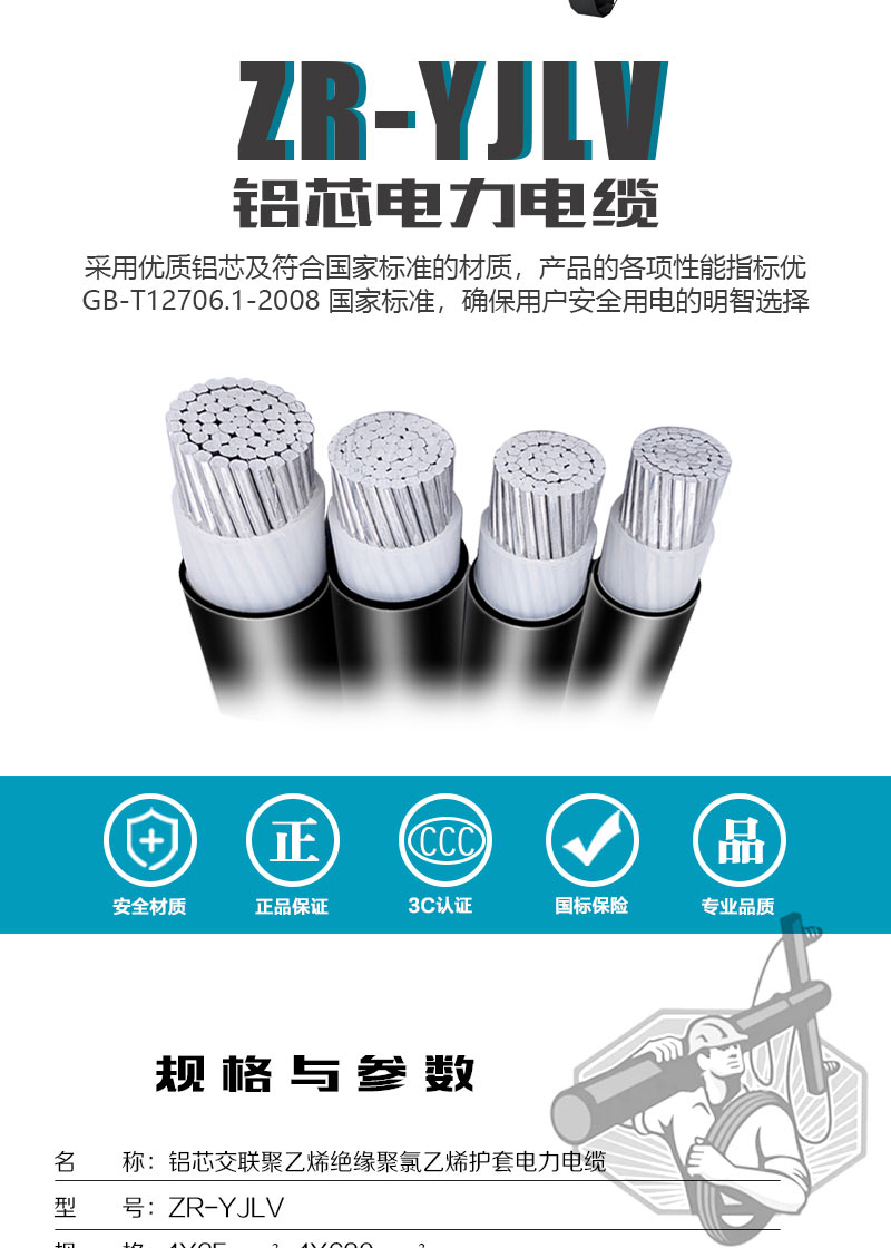 沈阳电线电缆有限公司 1芯 ZR-YJLV 1*25mm²--1*630mm² 铝芯交联聚乙烯绝缘聚氯乙烯护套电力电缆 铝芯电力电缆