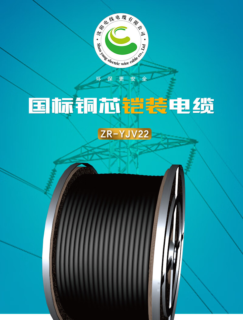 沈阳电线电缆有限公司-ZR-YJV22-0.6/1KV-4*35mm²+1*16mm²国标铜芯电缆铠装 4*10+1*6mm²--4*300+1*150mm²