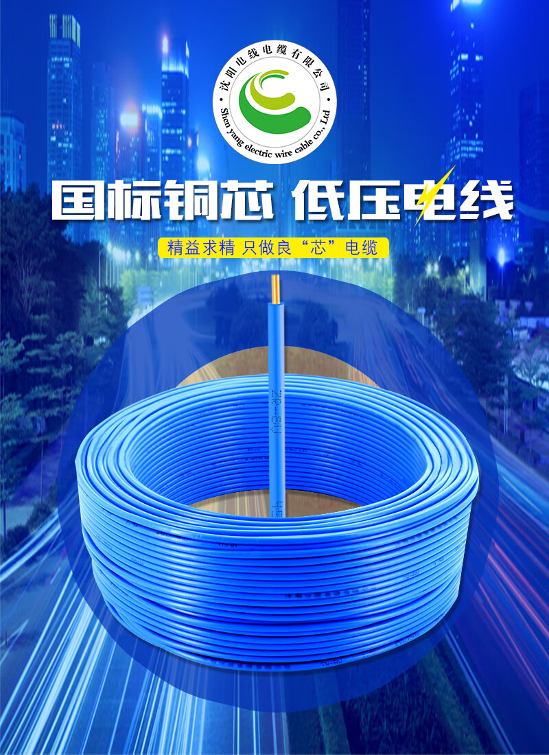 沈阳电线电缆有限公司-ZR-BV-450/750V-1X4mm²国标铜芯电线阻燃单芯硬线-95米捆-蓝色 1.5mm²-240mm²